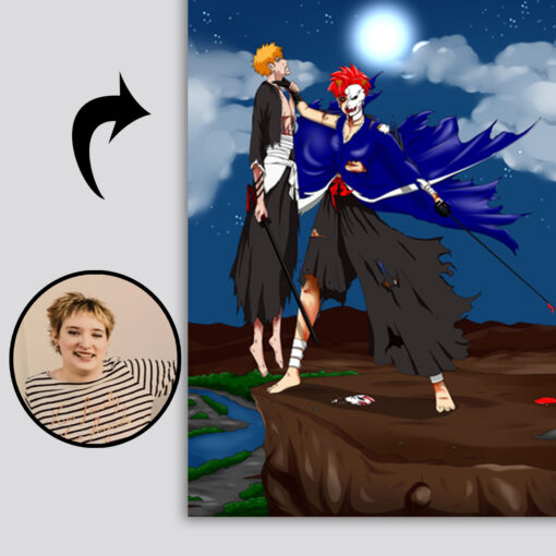I was so pleased with the outcome. I had a vision and Custom Anime Art brought it to life. I even purchased as second one of my sister and I after I received the art preview. They are great at what they do. I have recommended Custom Anime Art to all my Anime loving friends.